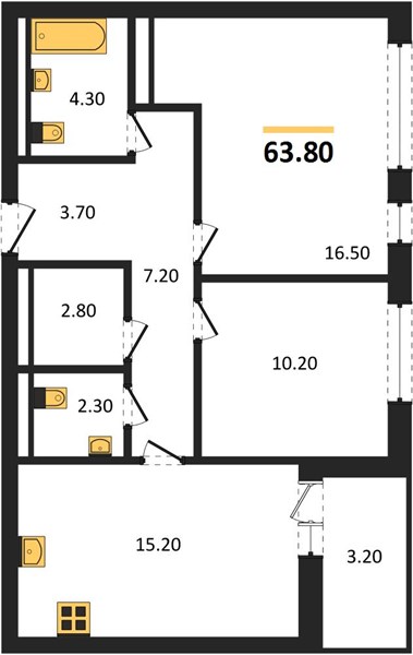 | Общая площадь: | 63.60 м2 |