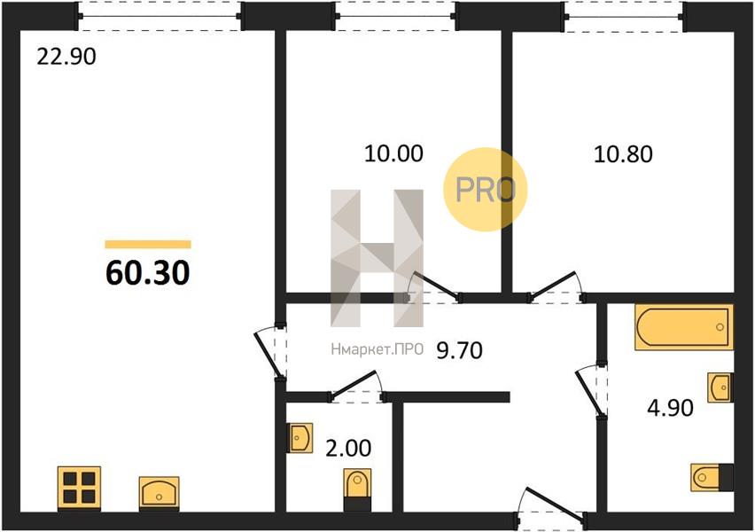 Квартира: 2 к 60,30 кв.м., 4 этаж в комплексе Солнечный, 5 очередь, корп.6.3, сдача: 4кв. , этажей: 16, адрес Екатеринбург г., Лучистая ул., , Застройщик: ГК ЭТАЛОН.
