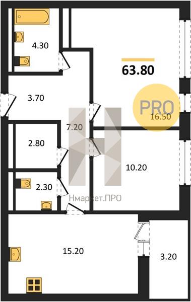 | Общая площадь: | 63.60 м2 |