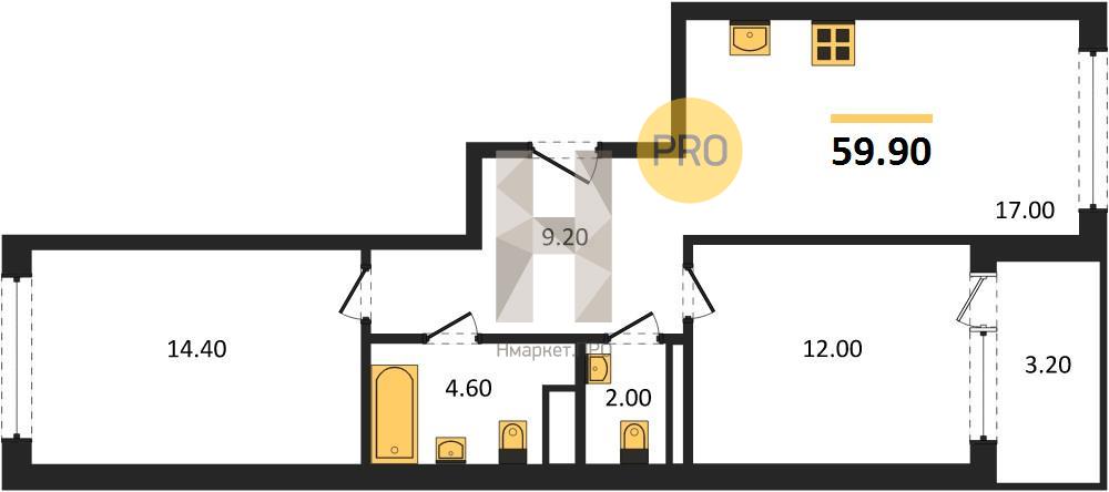 Квартира: 2 к 59,90 кв.м., 12 этаж в комплексе Солнечный, 5 очередь, корп.6.3, сдача: 4кв. , этажей: 16, адрес Екатеринбург г., Лучистая ул., , Застройщик: ГК ЭТАЛОН.