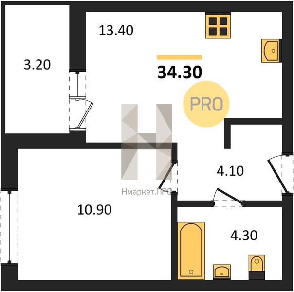 | Общая площадь: | 34.30 м2 |