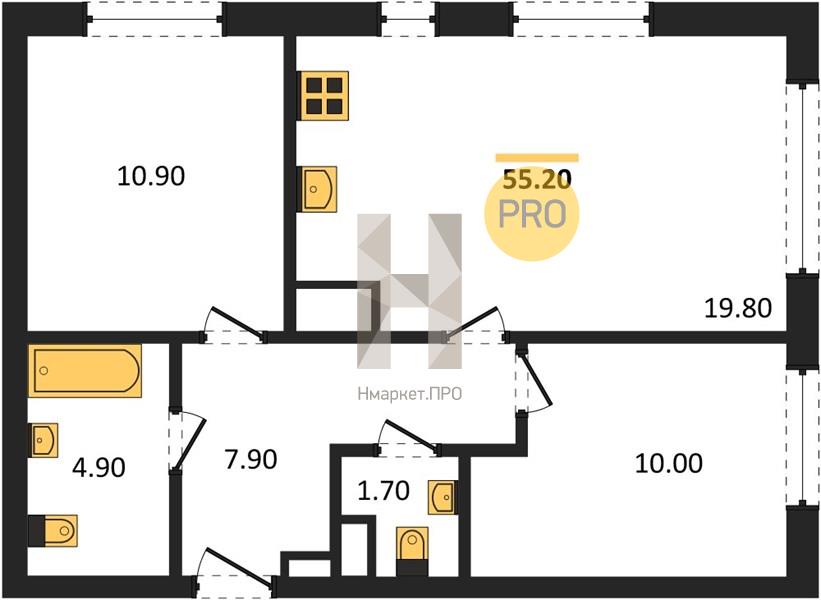 Квартира: 2 к 55,20 кв.м., 5 этаж в комплексе Солнечный, 5 очередь, корп.6.3, сдача: 4кв. , этажей: 16, адрес Екатеринбург г., Лучистая ул., , Застройщик: ГК ЭТАЛОН.