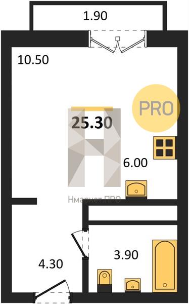 | Общая площадь: | 25.30 м2 |