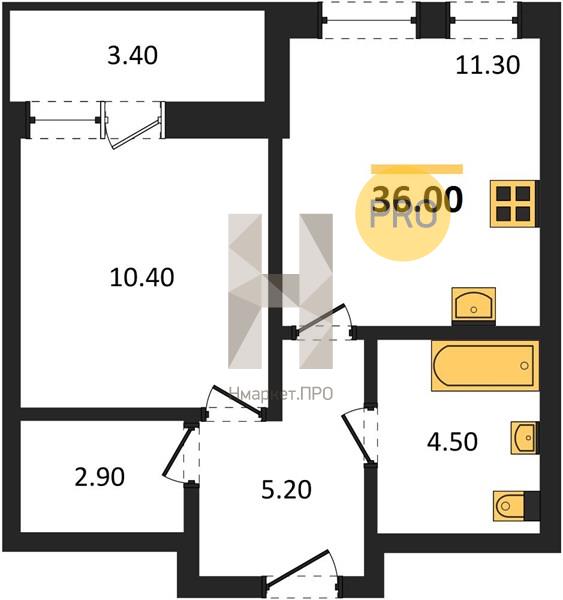 Квартира: 1 к 36,00 кв.м., 11 этаж в комплексе Солнечный, 5 очередь, корп.6.4, сдача: 4кв. , этажей: 15, адрес Екатеринбург г., Лучистая ул., д. 6.4, Застройщик: ГК ЭТАЛОН.