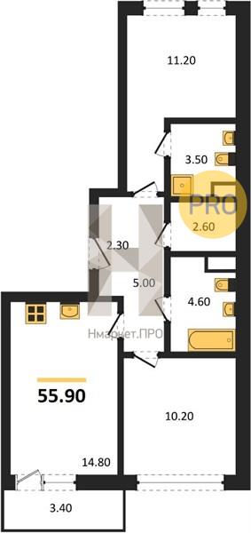 Квартира: 2 к 55,90 кв.м., 13 этаж в комплексе Солнечный, 5 очередь, корп.6.4, сдача: 4кв. , этажей: 15, адрес Екатеринбург г., Лучистая ул., д. 6.4, Застройщик: ГК ЭТАЛОН.