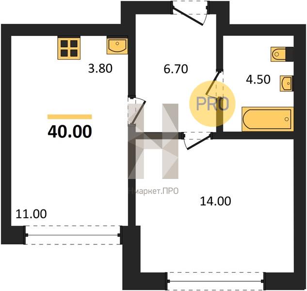 | Общая площадь: | 40.00 м2 |