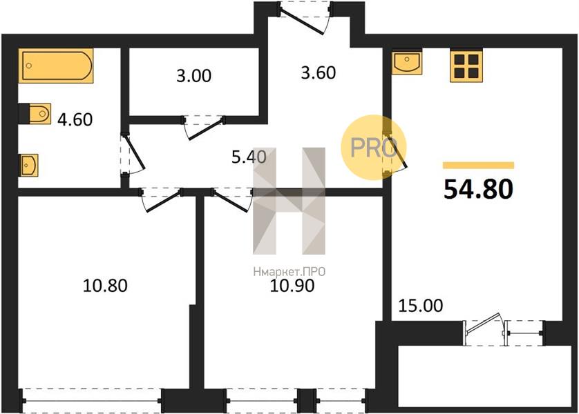 | Общая площадь: | 54.80 м2 |