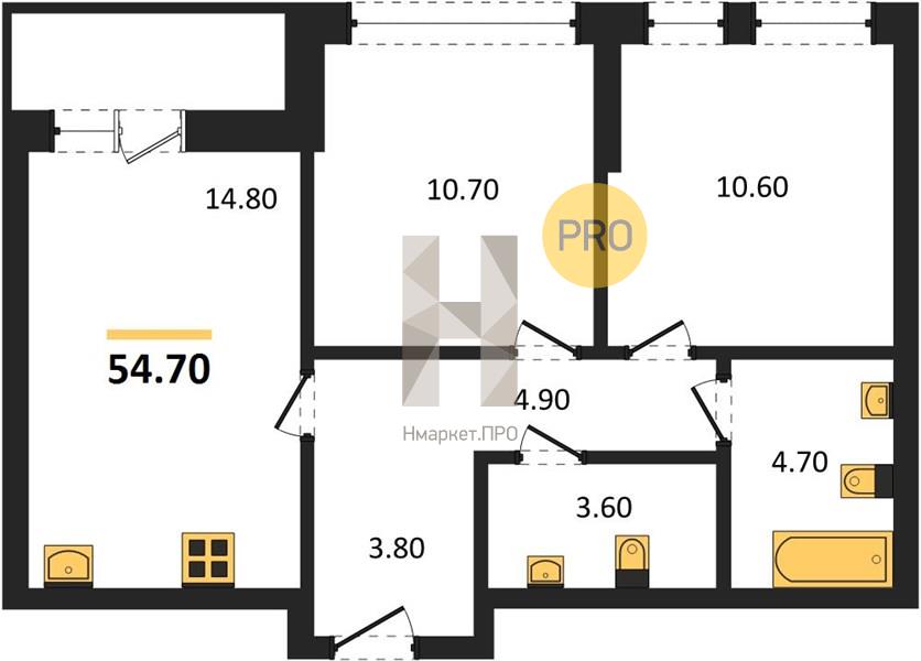 | Общая площадь: | 54.70 м2 |