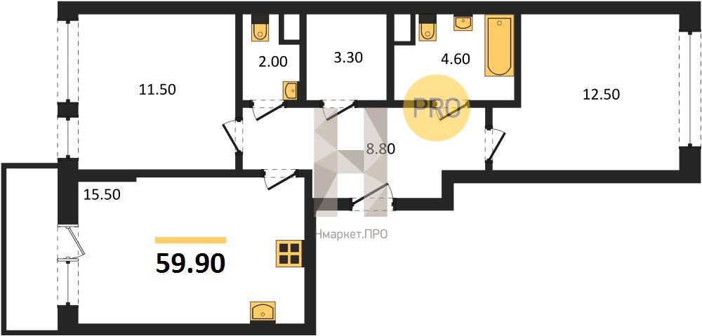 | Общая площадь: | 59.90 м2 |