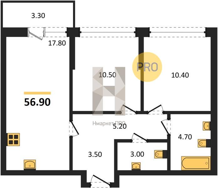 Квартира: 2 к 56,90 кв.м., 10 этаж в комплексе Солнечный, 5 очередь, корп.6.4, сдача: 4кв. , этажей: 15, адрес Екатеринбург г., Лучистая ул., д. 6.4, Застройщик: ГК ЭТАЛОН.