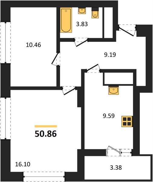 Квартира: 2 к 50,86 кв.м., 14 этаж в комплексе Тишина, 2 очередь, корп.2, сдача: 2кв. , этажей: 24, адрес Екатеринбург г., Ляпустина ул., , Застройщик: Тишина.