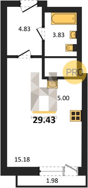 Студия: 29,43 кв.м., 18 этаж в комплексе Тишина, 2 очередь, корп.2, сдача: 2кв. , этажей: 24, адрес Екатеринбург г., Ляпустина ул., , Застройщик: Тишина.