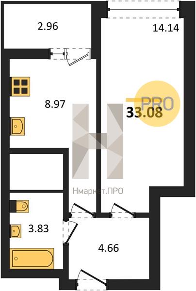 Квартира: 1 к 33,08 кв.м., 23 этаж в комплексе Тишина, 2 очередь, корп.2, сдача: 2кв. , этажей: 24, адрес Екатеринбург г., Ляпустина ул., , Застройщик: Тишина.
