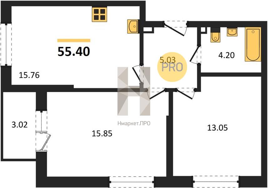 | Общая площадь: | 55.40 м2 |
