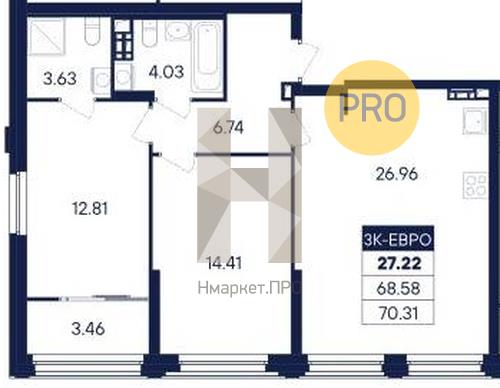| Площадь кухни: | 26.96 м2 |