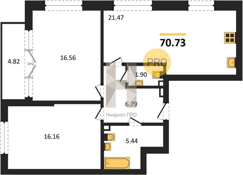 Квартира: 2 к 70,73 кв.м., 10 этаж в комплексе Динамика, 1 очередь, корп.1, сдача: 4кв. , этажей: 31, адрес Екатеринбург г., Малышева ул., д. 145, Застройщик: Стройтэк.