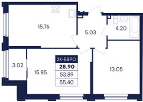 | Общая площадь: | 55.40 м2 |