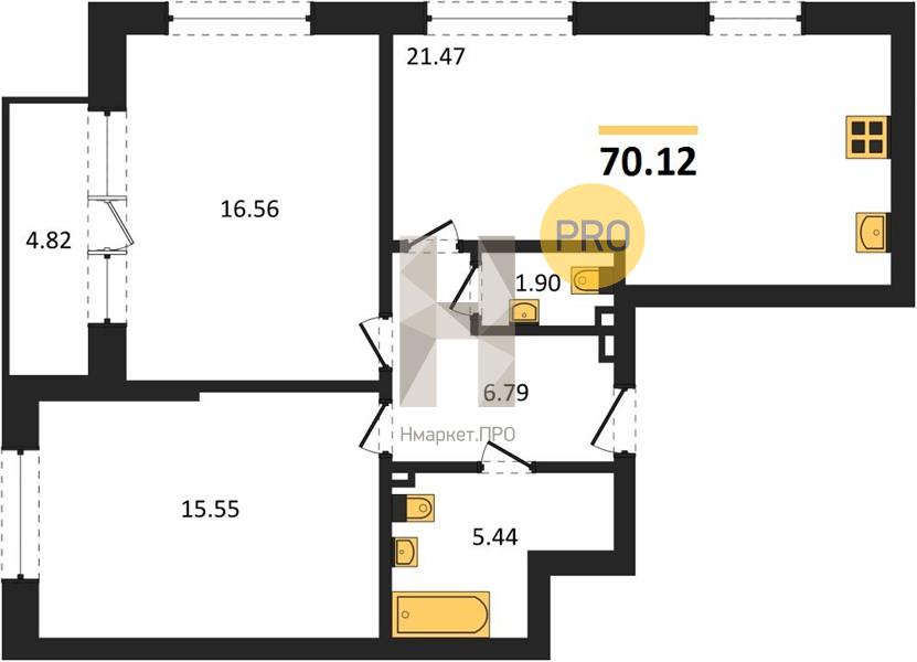 Квартира: 2 к 70,12 кв.м., 16 этаж в комплексе Динамика, 1 очередь, корп.1, сдача: 4кв. , этажей: 31, адрес Екатеринбург г., Малышева ул., д. 145, Застройщик: Стройтэк.