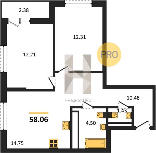 Квартира: 2 к 58,06 кв.м., 15 этаж в комплексе Жилая среда ШишкINN, 3 очередь, корп.3, сдача: 4кв. , этажей: 16, адрес Верхняя Пышма г., Машиностроителей ул., , Застройщик: ЖК Шишкин.