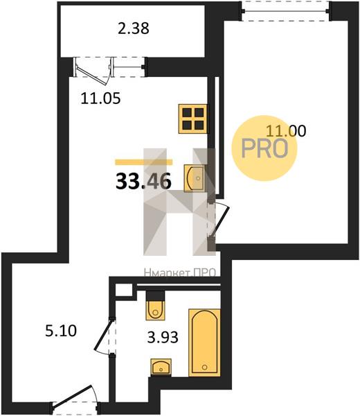 Квартира: 1 к 33,46 кв.м., 11 этаж в комплексе Жилая среда ШишкINN, 3 очередь, корп.3, сдача: 4кв. , этажей: 16, адрес Верхняя Пышма г., Машиностроителей ул., , Застройщик: ЖК Шишкин.
