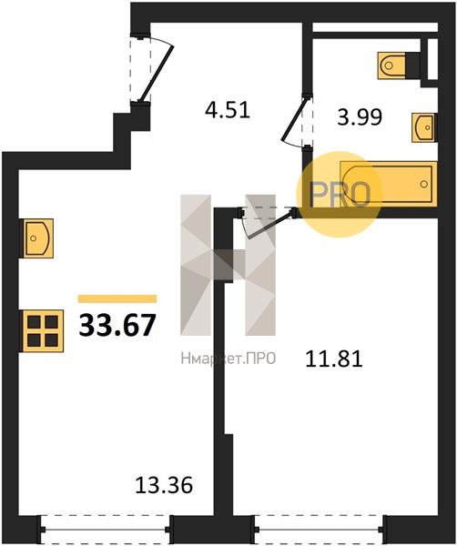 Квартира: 1 к 33,67 кв.м., 14 этаж в комплексе Жилая среда ШишкINN, 3 очередь, корп.3, сдача: 4кв. , этажей: 16, адрес Верхняя Пышма г., Машиностроителей ул., , Застройщик: ЖК Шишкин.