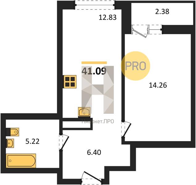 Квартира: 1 к 41,09 кв.м., 15 этаж в комплексе Жилая среда ШишкINN, 3 очередь, корп.3, сдача: 4кв. , этажей: 16, адрес Верхняя Пышма г., Машиностроителей ул., , Застройщик: ЖК Шишкин.