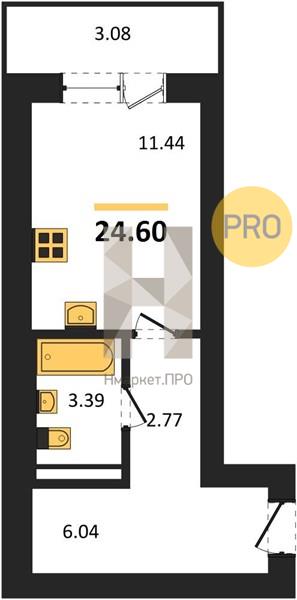 Студия: 24,60 кв.м., 3 этаж в комплексе Дом на Металлистов, 1 очередь, корп.1, сдача: 2кв. , этажей: 3, адрес Металлистов ул., д. 14, Застройщик: А-Строй.