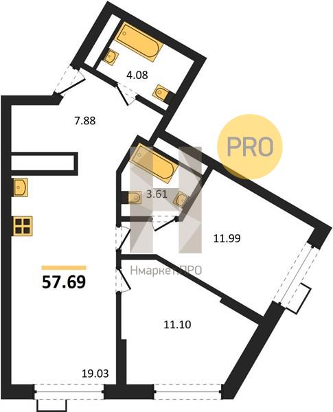 | Общая площадь: | 57.69 м2 |