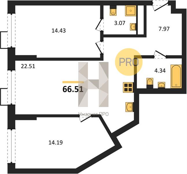 | Общая площадь: | 66.51 м2 |