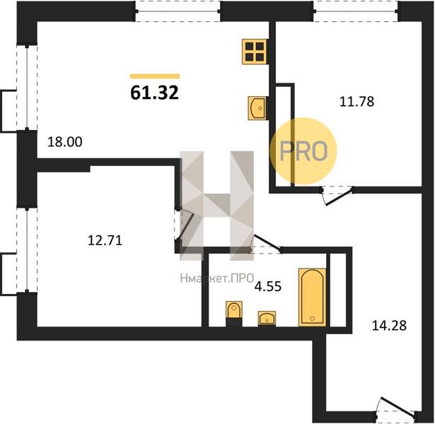 Квартира: 2 к 61,32 кв.м., 20 этаж в комплексе Визион, 1 очередь, корп.С1.18, сдача: 3кв. , этажей: 31, адрес Екатеринбург г., Металлургов ул., , Застройщик: ATLAS Development.