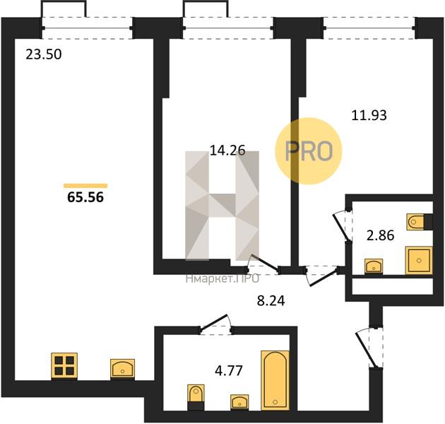 | Общая площадь: | 65.56 м2 |