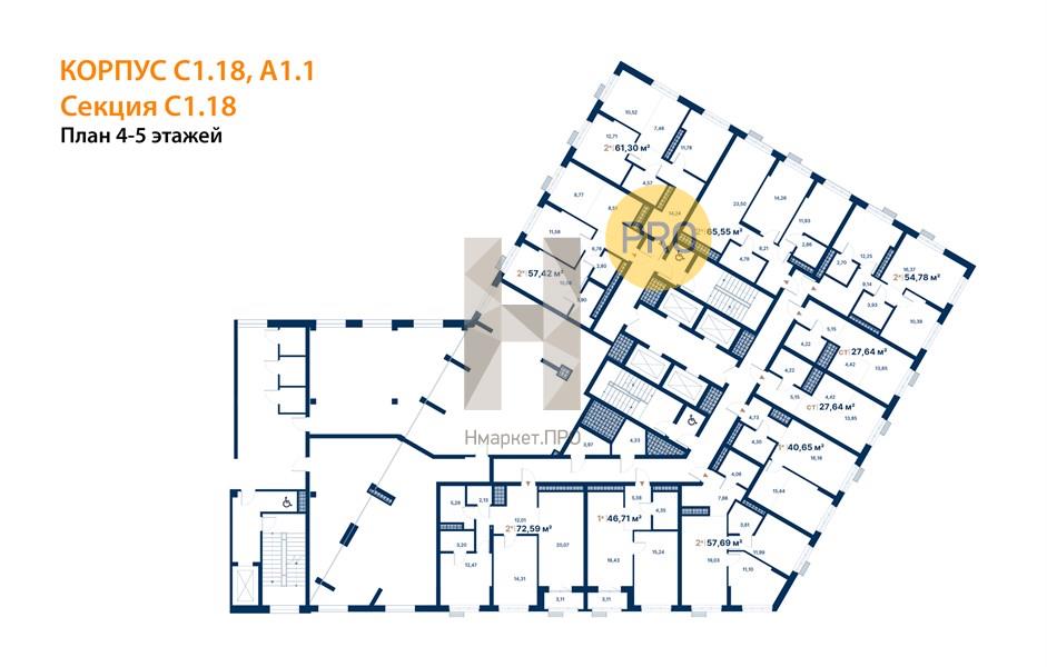 Квартира: 2 к 65,55 кв.м., 5 этаж в комплексе Визион, 1 очередь, корп.С1.18, сдача: 3кв. , этажей: 31, адрес Екатеринбург г., Металлургов ул., , Застройщик: ATLAS Development.