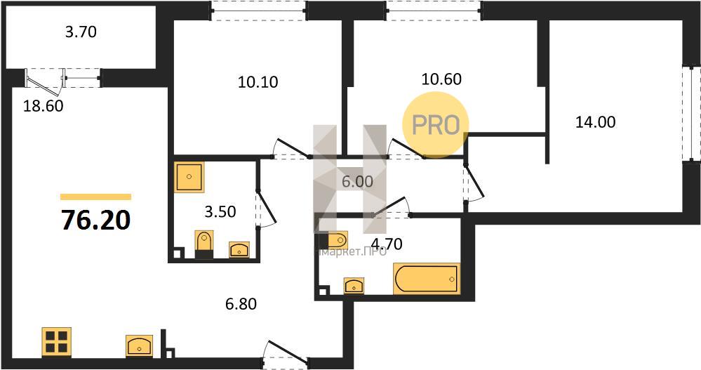 | Площадь кухни: | 18.60 м2 |