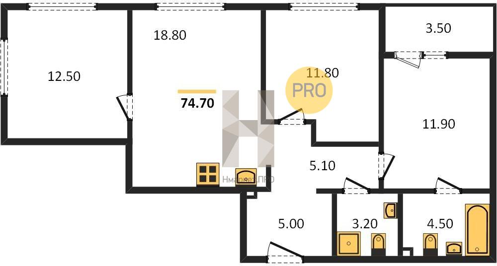 Квартира: 3 к 74,50 кв.м., 2 этаж в комплексе Екатерининский парк, 4 очередь, корп.1.2, сдача: 3кв. , этажей: 28, адрес Екатеринбург г., Михаила Ананьева ул., д. 4/2, Застройщик: TEN девелопмент.