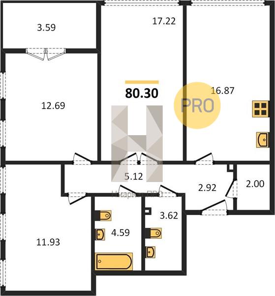 | Общая площадь: | 80.30 м2 |