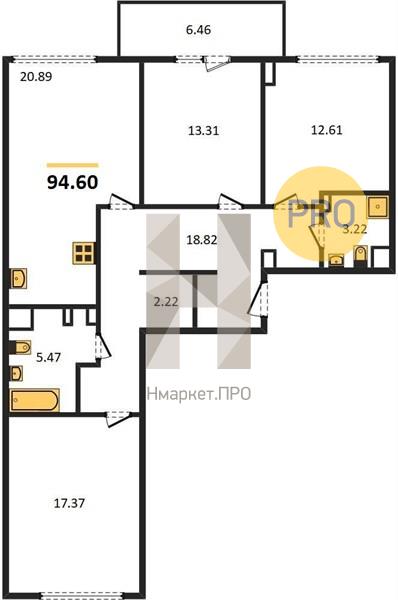Квартира: 3 к 94,60 кв.м., 6 этаж в комплексе Проспект Мира, 3 очередь, корп.11Д, сдача: 2кв. , этажей: 9, адрес Екатеринбург г., Мира ул., д. 47/5, Застройщик: Первостроитель.