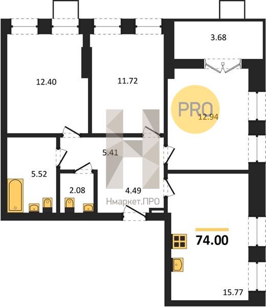 Квартира: 3 к 74,00 кв.м., 11 этаж в комплексе Проспект Мира, 2 очередь, корп.6, сдача: 2кв. , этажей: 27, адрес Екатеринбург г., Мира ул., д. 47/6, Застройщик: Первостроитель.