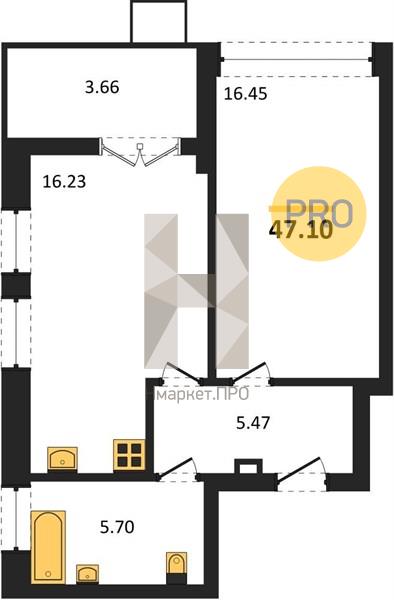 | Жилая площадь: | 16.45 м2 |