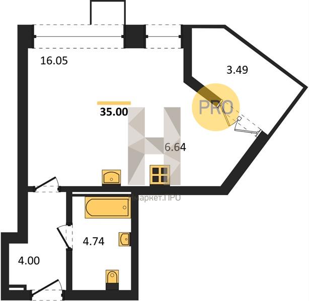 Студия: 34,40 кв.м., 18 этаж в комплексе Проспект Мира, 2 очередь, корп.6, сдача: 2кв. , этажей: 27, адрес Екатеринбург г., Мира ул., д. 47/6, Застройщик: Первостроитель.