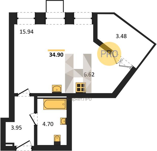 Студия: 34,40 кв.м., 2 этаж в комплексе Проспект Мира, 2 очередь, корп.6, сдача: 2кв. , этажей: 27, адрес Екатеринбург г., Мира ул., д. 47/6, Застройщик: Первостроитель.