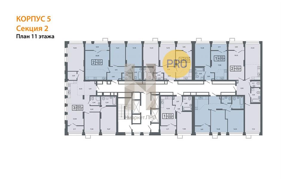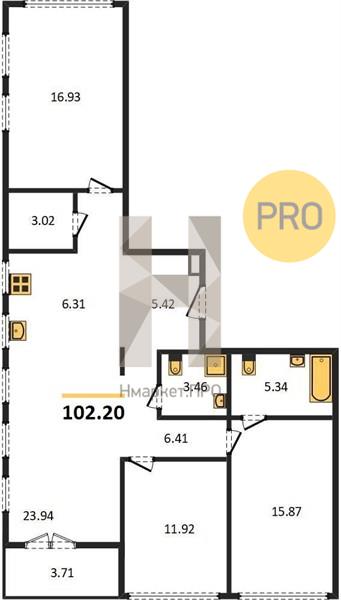 Квартира: 3 к 102,20 кв.м., 11 этаж в комплексе Проспект Мира, 3 очередь, корп.5, сдача: 4кв. , этажей: 24, адрес Екатеринбург г., Мира ул., д. 47/7, Застройщик: Первостроитель.