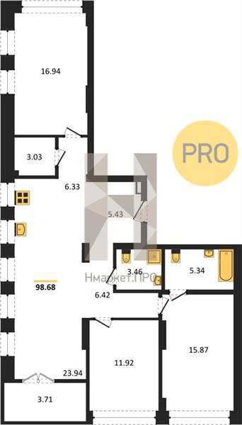 Квартира: 3 к 102,10 кв.м., 13 этаж в комплексе Проспект Мира, 3 очередь, корп.5, сдача: 4кв. , этажей: 24, адрес Екатеринбург г., Мира ул., д. 47/7, Застройщик: Первостроитель.