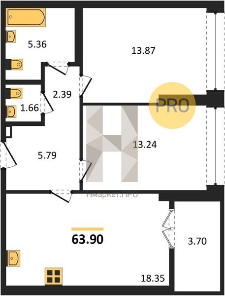 Квартира: 2 к 63,90 кв.м., 6 этаж в комплексе Проспект Мира, 3 очередь, корп.5, сдача: 4кв. , этажей: 24, адрес Екатеринбург г., Мира ул., д. 47/7, Застройщик: Первостроитель.
