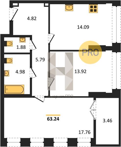 Квартира: 2 к 66,40 кв.м., 1 этаж в комплексе Проспект Мира, 3 очередь, корп.5, сдача: 4кв. , этажей: 24, адрес Екатеринбург г., Мира ул., д. 47/7, Застройщик: Первостроитель.