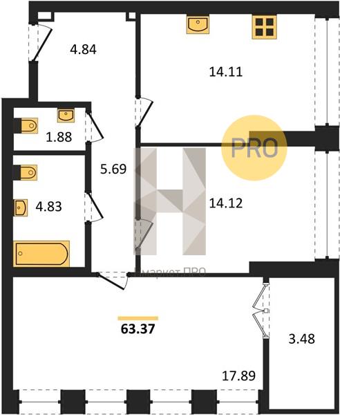 Квартира: 2 к 66,80 кв.м., 8 этаж в комплексе Проспект Мира, 3 очередь, корп.5, сдача: 4кв. , этажей: 24, адрес Екатеринбург г., Мира ул., д. 47/7, Застройщик: Первостроитель.