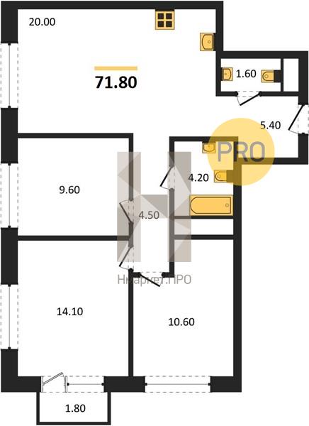Квартира: 3 к 71,80 кв.м., 17 этаж в комплексе RAZUM на Титова, 1 очередь, корп.1, сдача: 3кв. , этажей: 29, адрес Екатеринбург г., Монтерская ул., , Застройщик: РАЗУМ.