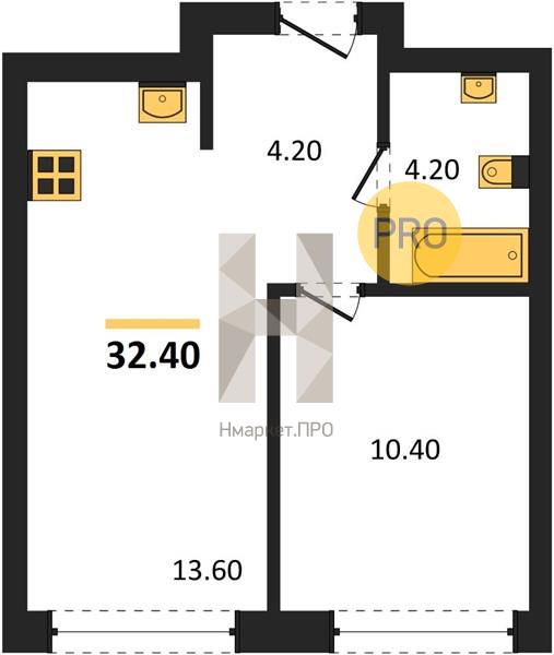 Квартира: 1 к 32,40 кв.м., 23 этаж в комплексе RAZUM на Титова, 1 очередь, корп.1, сдача: 3кв. , этажей: 29, адрес Екатеринбург г., Монтерская ул., , Застройщик: РАЗУМ.