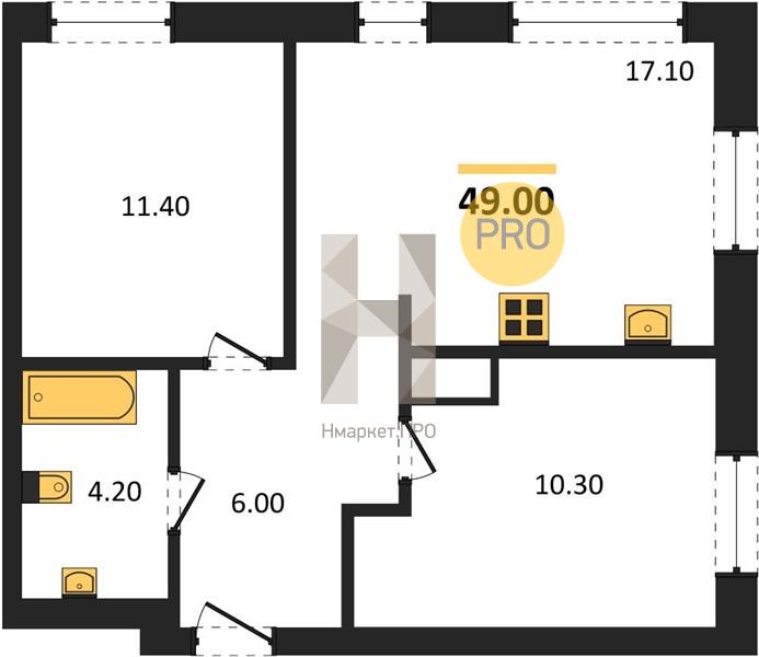 | Площадь кухни: | 17.10 м2 |