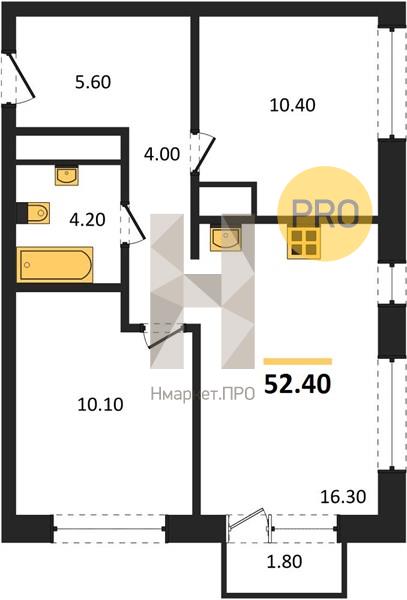 Квартира: 2 к 52,40 кв.м., 8 этаж в комплексе RAZUM на Титова, 1 очередь, корп.1, сдача: 3кв. , этажей: 29, адрес Екатеринбург г., Монтерская ул., , Застройщик: РАЗУМ.