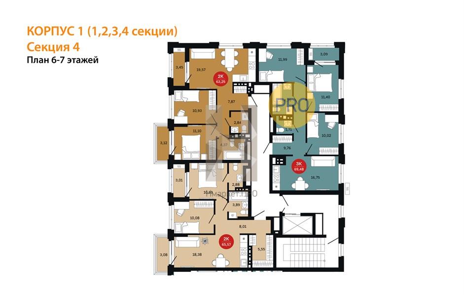 Квартира: 2 к 65,57 кв.м., 6 этаж в комплексе Сибирская калина, 1 очередь, корп.1 (1,2,3,4 секции), сдача: 2кв. , этажей: 25, адрес Екатеринбург г., Монтерская ул., , Застройщик: Баланс Девелопмент.